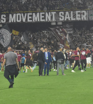 SALERNO – Quel famoso 7% è diventato realtà. Quella squadra da tutti già indicata come sicura retrocessa ce l’ha fatta. Nella maniera più incredibile, sofferta, brutta, tesa ma alla fine bellissima: la Salernitana resta in Serie A. Una notte che sembrava nera, nerissima con l’Udinese che ha passeggiato all’Arechi, i granata ringraziano il Venezia che ha fermato sul pareggio il Cagliari. Onore ai lagunari che sono sempre più importanti nella storia recente del club granata. È finita in trionfo con i giocatori sotto la curva, increduli, quando è arrivata la notizia del triplice fischio finale al Penzo. La partita dell’Arechi era finita già da un tempo e sia i giocatori, sia i tifosi non hanno fatto altro che attendere la lieta notizia da Venezia. Più di sei minuti di recupero, ci classici falsi allarmi prima del boato che ha trasformato un incubo in un sogno. E’ la prima volta della storia che la Salernitana riesce a conquistare la salvezza e come da dna l’ha fatto soffrendo. In campo onestamente la squadra di Nicola non è praticamente mai scesa. Con Verdi al centrocampo al posto dello squalificato Ederson, la squadra è parsa slegata. Ma più che un problema tattico è stato dal punto di vista mentale che la squadra è sembrata bloccata dalla tensione e dalla paura. A maggior ragione quando dopo soli sei minuti l’Udinese ha trovato il gol con Deulofeu. La reazione seppur timida c’è stata, ma l’Udinese ha trovato sempre ampie praterie e così ha trovato il raddoppio con Nestorovski. Poi in un finale di tempo incredibile la Salernitana ha prima sprecato con Verdi, poi ha subito il terzo gol, ha preso un palo con Fazio e poi allo scadere ha rischiato di capitolare ancora ma Belec ha parato il rigore di Pereyra. Proprio l’argentino a inizio ripresa ha messo dentro il gol del poker con una Salernitana ormai a testa bassa e che si è affidata al destino. Le occasioni per segnare non sono mancate, tra cui un autopalo di Becao ed un paio di miracoli di Padelli, uno dei quali su Ribery. Sembrava davvero una notte stregata, anche se inutile, la Salernitana non è mai riuscita a trovare la rete. A quel punto non si poteva che sperare, che attendere. E questa volta, forse per la prima volta della storia, il destino che era scivolato via dalle mani della Salernitana, non ha voltato le spalle a Nicola e al suo manipolo di eroi che hanno recuperato una situazione impossibile rischiando di fermarsi proprio ad un passo dal traguardo. Sarebbe stato come vanificare quanto di buono fatto nelle ultime settimane, non l’avrebbe meritato la Salernitana e questa volta la festa è stata tutta granata. Un risarcimento del destino per tanti torti ricevuti nel passato. La Salernitana resta in Serie A e da oggi può iniziare davvero una storia diversa per la squadra. Un punto di partenza in una notte da incubo trasformatasi nel sogno più bello. Anzi, nessun sogno ma solo realtà: quel maledetto 7% è diventato un meraviglioso 100%.
