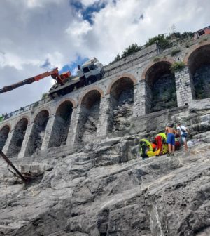 Ancora un incidente sul lavoro. Questa mattina, in via Torricella, fra Minori e Maiori, un operaio dell’Anas è finito sugli scogli, dopo un volo dal cestello della gru. Sul posto intervenuti elicotteri e carabinieri di Amalfi . Il camion ha perso il controllo e gli operai sono sbalzati sulle rocce. Sarebbero due i feriti nell’incidente sul lavoro a Minori. Molto complicato per i soccorritori trasferirlo in ambulanza l’operaio che era nel cestello, che e’ rimasto riverso a terra sulla scogliera e per il quale era stato richiesto l’intervento di un elicottero per il soccorso dall’alto mediante verricello. Un ferito e’ stato trasferito all’ospedale Castiglione di Ravello, l’altro al San Giovanni e Ruggi di Dio di Salerno. Stando alle prime valutazioni degli investigatori, la gru, che e’ di una ditta di ponteggi siciliana, non sarebbe stato ben ancorato all’asfalto. L’operaio ricoverato al Castiglione di Ravello ha solo qualche contusione ed e’ sotto choc ma ha riferito alcuni elementi utili agli investigatori per chiarire la dinamica. L’altro operaio, di circa 40 anni, alle 15.10 e’ stato imbracato e portato a bordo dell’elicottero da personale specializzato mediante verricello, per essere trasferito al Ruggi d’Aragona di Salerno. Ha un politrauma e le sue condizioni sono giudicate gravi. Si e’ reso necessario chiudere temporaneamente al traffico la statale al chilometro 34,200 per consentire le delicate operazioni di rimozione del mezzo che e’ rimasto in equilibrio precario. La raccomandazione e’ di non convergere verso la zona interessata al fine di non intralciare l’intervento che resta delicato.