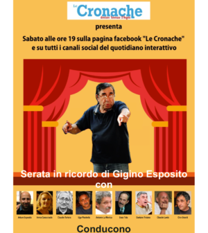 In Palcoscenico con le Cronache, il contenitore teatrale del nostro quotidiano, questa sera alle ore 19 ospiterà tanti attori e registi salernitani che insieme a chi scrive e ad Olga Chieffi, ricorderanno ad un anno dalla scomparsa il regista Gigino Esposito. In diretta sulle pagine Facebook e Youtube del nostro quotidiano ci saranno il figlio Arturo, la nuora Imma Caracciuolo, che ne hanno racolto l’eredità e stanno portando avanti il Teatro Arbostella che presto al termine dei lavori di ristrutturazione verrà rinominato e dedicato proprio al caro Gigino. Gli altri ospiti saranno Claudio Tortora con il quale Gigino ha condiviso la gestione del Teatro Ridotto e l’organizzazione di tante manifestazioni, Ugo Piastrella che ha diretto in tanti spettacoli e con il quale aveva un rapporto di amici talmente profondo da accettare di essere il suo compare di cresima, Antonio La Monica che per anni è stato uno dei suoi principali attori della comapagnia amatoriale che ha fondato nel 1976, Gaetano Troiano che è stato diretto da Gigino in moltissimi spettacoli e che negli ultimi anni era diventato il suo braccio destro, Enzo Tota legato da un rapporto professionale e di amicizia con Gigino, ed infine Claudio Lardo e Ciro Girardi, tra gli ultimi, ma non di certo meno importanti degli altri, ad aver lavorato con lui in diversi spettacoli portati in scena in quella che Gigino ha sempre considerato la sua ultima (e vinta) sfida, il teatro Arbostella. Al termine della puntata si assistera alla messa in onda della commedia “L’ultimo scugnizzo” di Raffaele Viviani per la regia, proprio di Gigino Esposito, andato in scena nel 2014. La messinscena, narra la storia dello scugnizzo ‘Ntonio Esposito (interpretato da Giovanni Bonelli), che tenta di superare la propria condizione di vita precaria e cercare di dare una prospettiva di vita a Maria (Rita Cariello), la ragazza che ha messo incinta. Riesce a sistemarsi come segretario dell’avv. Razzulli (Vincenzo Galdo). Affidato a Titty Mangrella il ruolo di Donna Rosa, moglie dell’avvocato, a Nicoletta Romano, il ruolo di ‘Nnarella, Mariarosaria Milito è Donna Palmira, “Peppe ‘o navigante” è nterpretato da Franco Montinaro.