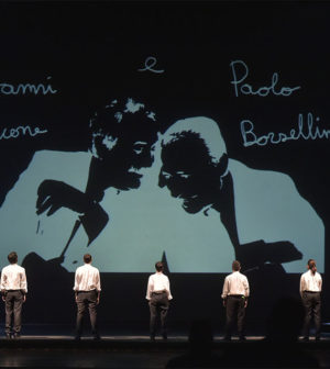 Si deve a Giulia Minoli l’idea di rendere presenti su un palco i protagonisti del conflitto interminabile con la criminalità organizzata: parenti di vittime, testimoni, pentiti, volontari, mediante i quali dar conto dei molteplici aspetti della sindrome italiana, il male che affligge questo Paese fin dalle sue origini, prima come fenomeno locale, a scala regionale, e poi diffusosi nell’intero territorio nazionale, come un inarrestabile rilascio di metastasi. “Dieci storie proprio così – terzo atto”, approdato al massimo cittadino, è parte di un progetto più ampio (“Il palcoscenico della legalità”), tuttora in corso, articolato in tre ambiti operativi: gli altri due, di natura formativa, sono la conduzione di laboratori propedeutici alla visione dello spettacolo rivolti agli studenti e la formazione relativa ai mestieri del teatro negli istituti penitenziari minorili. Si tratta insomma di una specie di “macchina della resilienza”, che, nell’affrontare un problema complesso, offre anche un contributo alla sua soluzione attraverso iniziative concrete. Per quanto concerne lo spettacolo, la drammaturgia è in continua evoluzione sia per l’esigenza di ottenere una sintesi dinamica, che tenga conto cioè dell’attualità, dell’urgenza di dar conto di fatti o di contesti nuovi, sia per il continuo adattamento alla sensibilità dell’uditorio o di tutte le realtà coinvolte nel progetto. La regia di Emanuela Giordano prevede un atto unico intervallato dalle musiche di Tommaso Di Giulio, eseguite da Leonardo Ceccarelli alle chitarre e Paolo Volpini alla batteria: un supporto robusto ma essenziale, così come la scena vuota in cui agiscono i personaggi interpretati da Maria Chiara Augenti, Daria D’aloia, Vincenzo D’amato, Valentina Minzoni e Alessio Vassallo, che si avvicendano in dialoghi e monologhi per raccontare esperienze reali o rappresentare scene realmente accadute o anche situazioni immaginarie, simboliche: interviste, interrogatori, tentativi di corruzione. Basta poco per far rivivere chi abbia scelto di gettare la maschera, di metterci la faccia, di rischiare in prima persona per abbattere sistemi inveterati o per costruirne di nuovi, inclusivi e sani. Al massimo un’inflessione dialettale aggiunta alla bisogna a una caratterizzazione comunque convincente. Una certa enfasi sembra avvolgere dei blocchi composti in vari modi su un tavolo per rappresentare episodi di speculazione edilizia, l’erezione di complessi commerciali, residenziali o addirittura statali. In qualche modo, quei prismi simboleggiano, più in generale, la “roba” e, di riflesso, l’insaziabile avidità che anima i tanti meccanismi perversi che infettano la società, che ne inceppano e deviano i processi sani, legali. Sono soprattutto i piccoli ostacoli, a infastidire lor signori. Di grandi, forse, non ne hanno mai incontrati. I pochi che hanno detto di no, hanno denunciato, hanno voluto sapere e divulgare qualche particolare di troppo, vincendo le paure proprie e dei familiari, sono diventati spesso dei bersagli facili, svantaggiati dal proprio isolamento, dalla propria eccezionalità. Quando tuttavia sono riusciti, magari pagando un tributo pesantissimo, a opporsi allo stato delle cose, all’omertà e all’assuefazione, da ogni piccolo colpo al sistema si è aperta una crepa sempre più ampia, che ha portato a inchieste, sequestri, cambiamento di atteggiamento da parte di intere comunità o almeno di loro porzioni significative. Sono i semi della riscossa, i germi di un Vespro smisurato che libererebbe finalmente il Paese, se tutti lo volessimo, se fosse un paese normale.